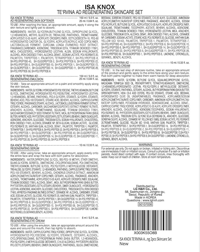- ISA KNOX TE'RVINA AD REGENERATING SKINCARE SET - TE'RVINA AD Regenerating Skin Softener (5.1+0.9fl oz), TE'RVINA AD Regenerating Emulsion (5.1+0.9fl oz), TE'RVINA AD Regenerating Serum (0.3fl oz), TE'RVINA AD Regenerating Eye Cream (0.2fl oz) & TE'RVINA AD Regenerating Cream (0.3fl oz)
