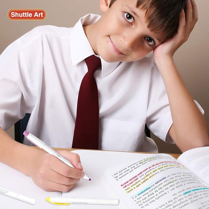 - NO BLEEDING & QUICK-DRYING: Premium quick-dry ink drawing on words stay crisp and clear without smearing, leaking, fading or bleeding (let ink dry before highlighting). Shuttle Art highlighters conform to ASTM-D4236.