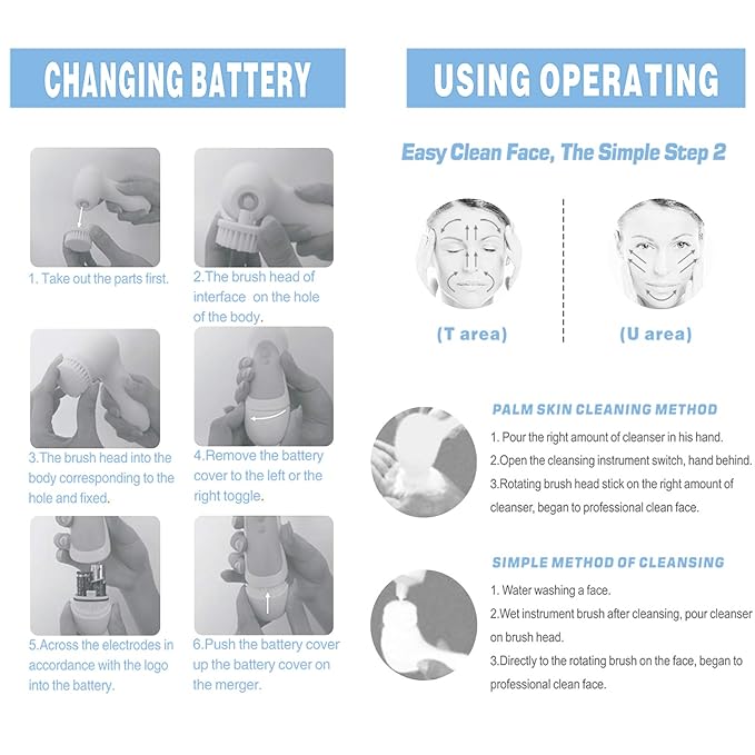 - WATER-RESISTANT & SHOWER SAFE: This facial cleansing brush is IPX5 waterproof, making it safe to use in the shower. For the facial cleansing brush to last, we sincerely recommend that you cleaned the device with cloth after use and keep the battery compartment dry. (Not include 2 AA batteries)