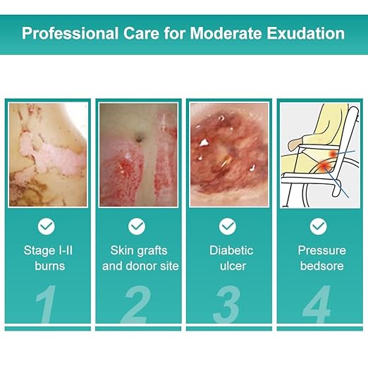 - Highly range of versatile - Applicable on large piece stage I, stage II burn, bedsore, cystic acne, ulcers with moderate exudate and the daily care for small post-op wounds, blisters, cuts, dermatitis