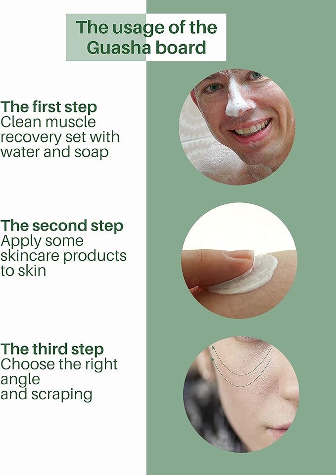 - ADVICE: apply some skincare products to skin before scraping, clean this muscle recovery set with warm water and soap