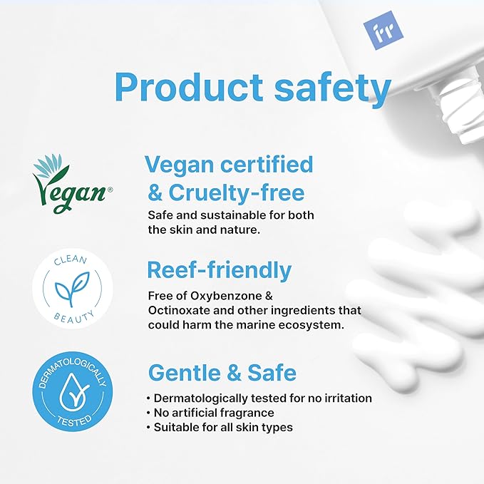 - PRODUCT SAFETY.Reef-friendly. Vegan certified & Cruelty-free. Dermatologically tested for no irritation. No fragrance. Suitable for all skin types.
