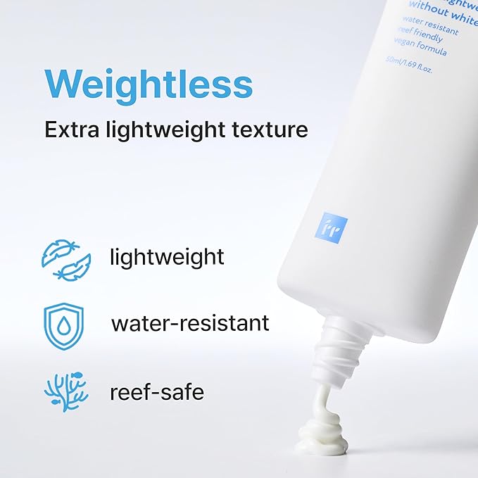 - WEIGHTLESS KOREAN SUNSCREEN.Extra lightweight texture with zero white cast. Easily spreads and absorbs quickly, leaving a refreshing, non-sticky, non-greasy finish