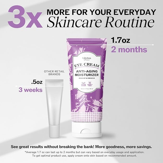 LilyAna Naturals Eye Cream for Dark Circles and Puffiness, Under Eye Cream for Wrinkles and Bags, Anti Aging helps Improve Dryness; for Sensitive Skin (1.7 Ounce, Pack of 2)