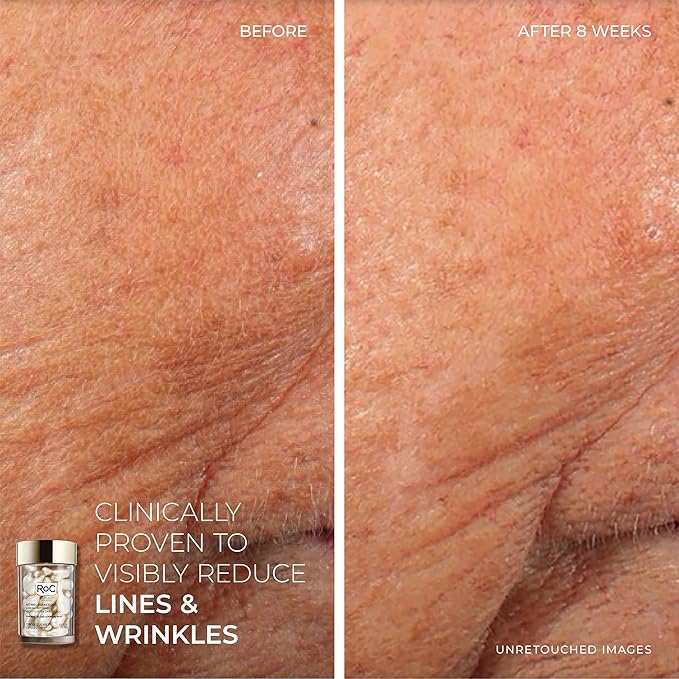 - RETINOL NIGHT SERUM CAPSULES: Improve the look of collagen-depleted skin with this encapsulated night serum, sealed tight for optimal freshness. Powered by concentrated pure RoC Retinol & a bio-derived antioxidant with 2X the effectiveness of Vitamin E.
