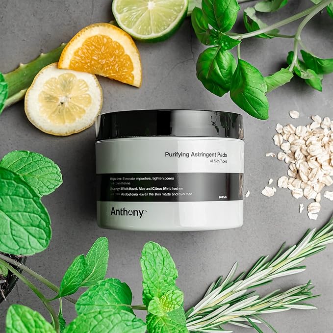 Anthony Glycolic Facial Cleanser, Normal to Oily Skin, 16 Fl Oz Purifying Astringent Toner Pads, 60 Count