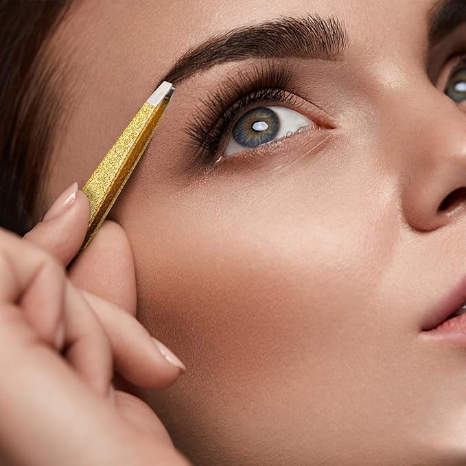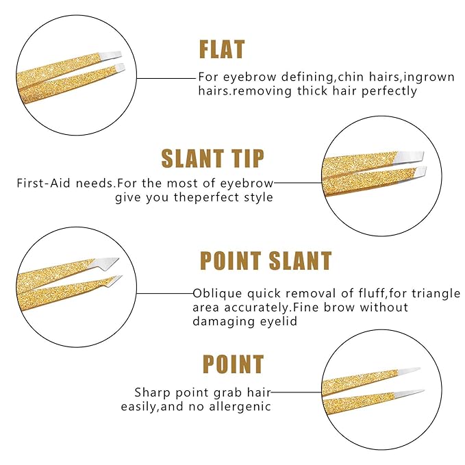 Eyebrow Tweezer Set, 4 Pcs Professional Stainless Steel Tweezers for Women, Precision Tweezer for Facial Hair, Splinter and Ingrown Hair Removal(Glod)