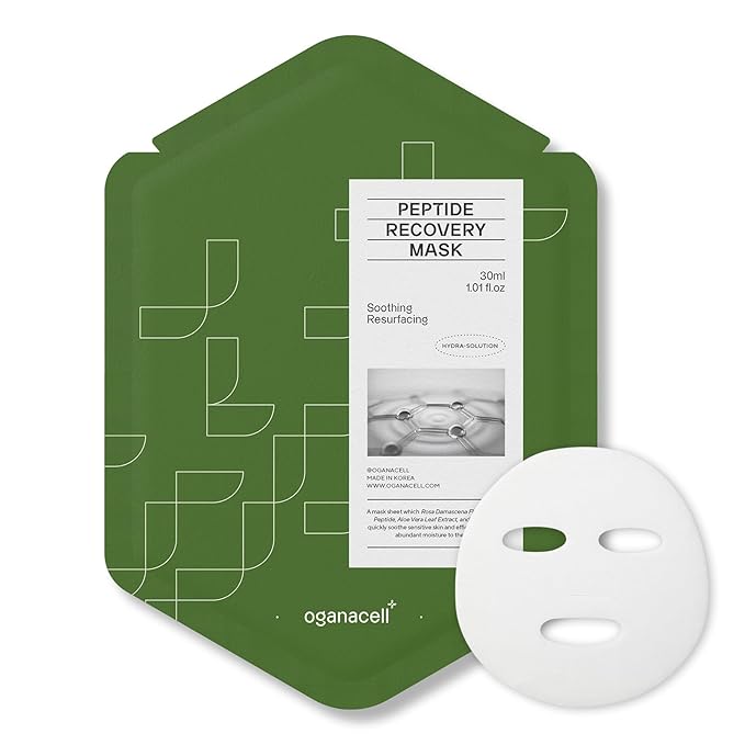 Peptide Recovery Mask with Cica and Rose Water, Calms and Soothes, Antioxidant-Rich Sheet Mask for Sensitive Skin, 7 Count