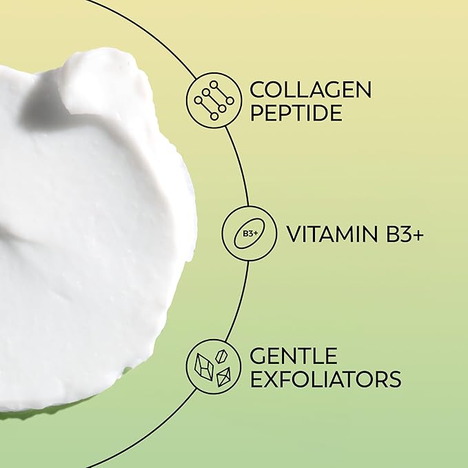 - Facial cleanser expertly formulated with Collagen Peptides and Niacinamide; It contains gentle exfoliators that will smooth skin