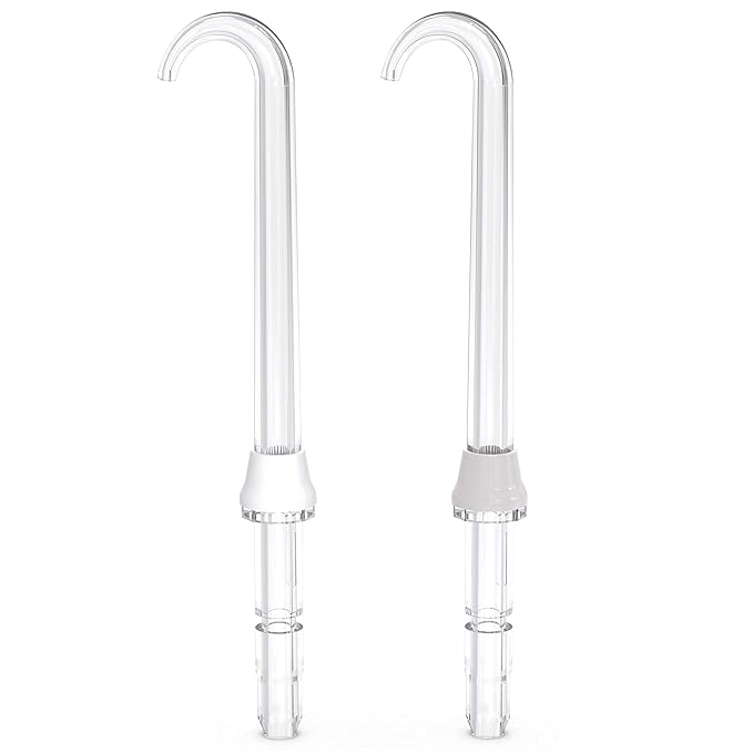 - 2 COUNT, MULTI-COLOR: Included within each package are 2 color-coded water flosser replacement tips (base color of tips may vary), color coding allows multiple users to easily identify their own tip; replace every 6 months