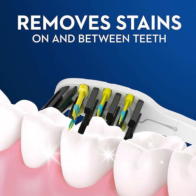 - The Charcoal infused bristles gently vibrate to effectively clean plaque and remove surface stains for whiter teeth
