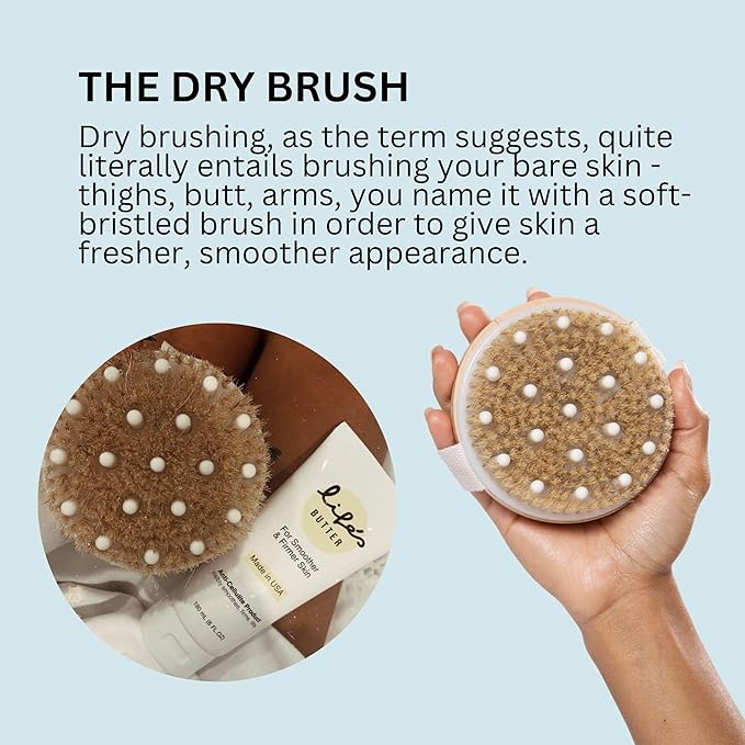 Life's Butter Anti-Cellulite Cream with L-Carnitine, Coenzyme Q10 | Skin Smoothening Natural Product | Fights Cellulite and Stretch Marks | 6 fl oz (Scent-Free) + Dry Brush