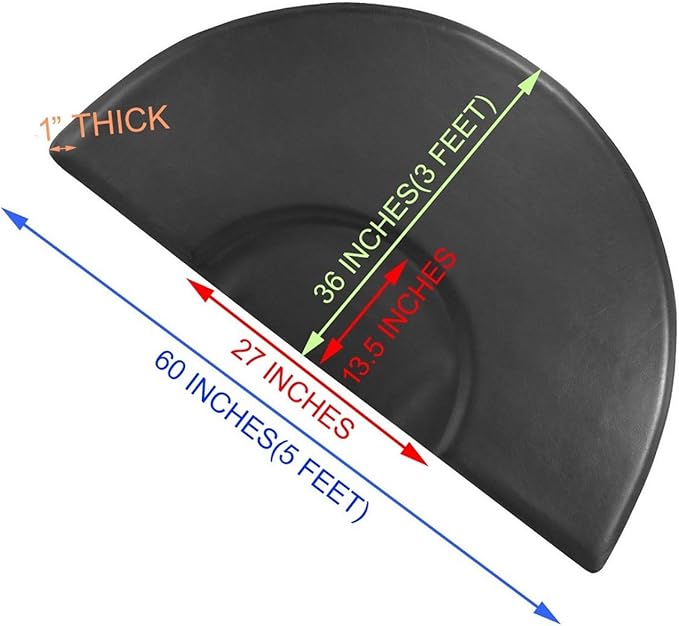 Kaleurrier Barber Chair Anti-Fatigue Floor Mat 5 ft. x 3 ft. with Semi-Circle Cut-Out for Barber Station Salon Shop Slip Resistant Waterproof 1 Inches Thick Saloon Foam Pad Black