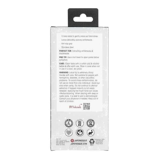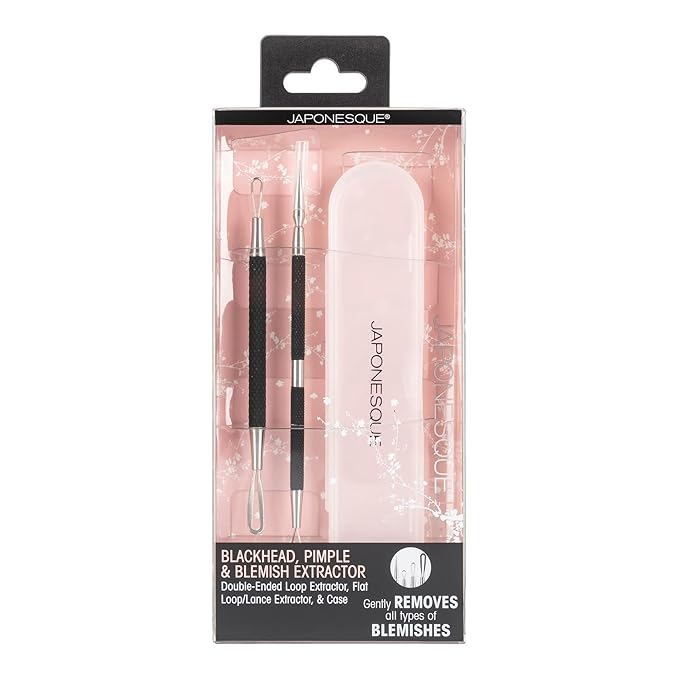 JAPONESQUE Blackhead, Pimple and Blemish Extractor with Dual-Ended Loop Extractor and Lancer, Made with Stainless Steel, Includes Protective Storage Case