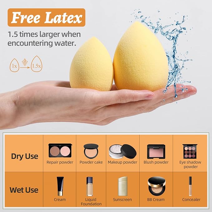 - Wet and dry use, blending sponge turns bigger when wet, dab it evenly to form a gorgeous makeup