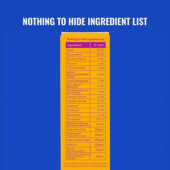 - Special Ingredients : Yerba Mate,Hyaluronic Acid,Caffeine,Acetyl Tetrapeptide-5