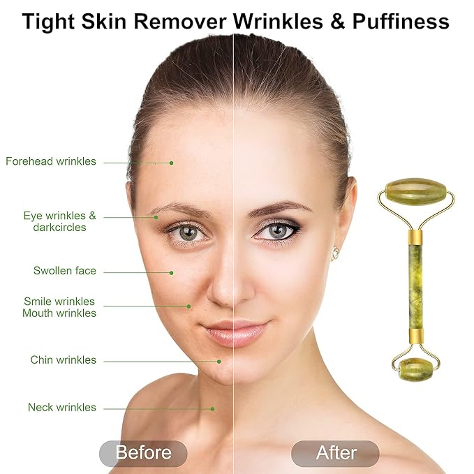 - Rejuvenate Skin & Relax Yourself: Using the ice roller & jade roller set could improve the general condition of your body. The ice roller helps relieve migraine and relieve pain, the jade roller and the guasha tools help shrink pores, promote blood circulation, reduce wrinkling, help to relax the muscle, face and body, leaving you with radiant skin and a relaxed graceful mood.