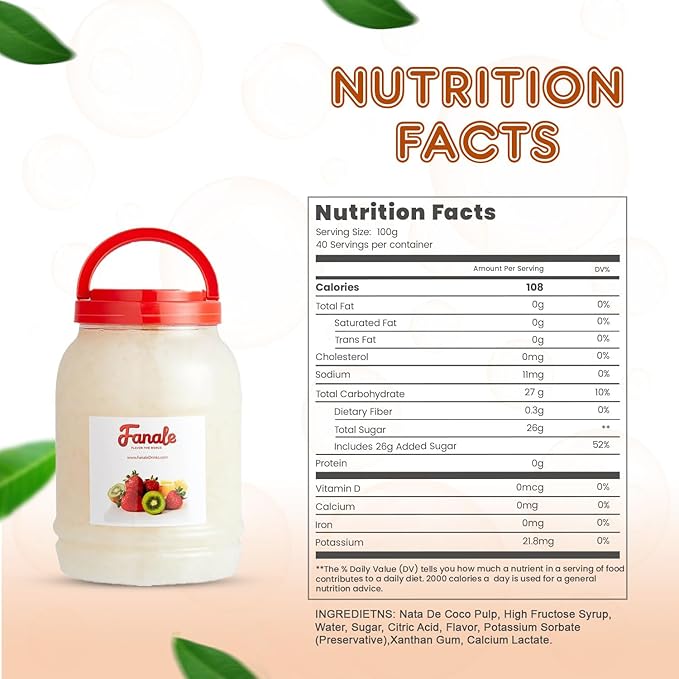 - Sweet and Exotic Flavor: Each Fanale coconut jelly boba tea variety is infused with sweet and exotic flavors that complement a range of recipes. This nata de coco jelly topping includes strawberry, lychee, blueberry, mango, sakura, green apple, coconut, rainbow, and coffee flavors, adding a distinct and delightful twist to your creations.