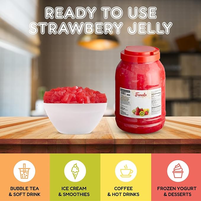 New Fanale Coconut Jelly Topping nata de coco for Boba Tea | Ice Cream | Yogurt | Smoothie | Milk Tea | Desserts (Strawberry, 8.3 lb)