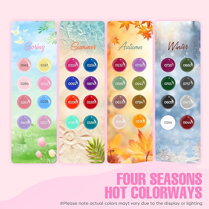 - 32 Colors Classic Set:The gel polish set has rich color intensity, covers all shades needed in the nail art process, from classic black, white, and red to various tones of pink, green, purple, and blue, gel polish bottle size: 0.98*0.59*2.16 inches, 0.024 Pounds