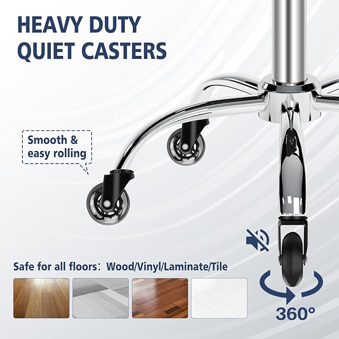 - 【QUIET AND SMOOTH CASTERS】This rolling stool with high-quality wheels are made of soft polyethylene, rolling very smoothly, protect hardwood floors, slate, tile,carpet, and other soft floors.You will love this lash chair with wheels,spa chairs for esthetician.