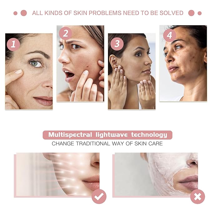 - Salon-Level Skin Care and Treatment: Use natural light waves, Solve stubborn skin problems. Can reduce and prevent wrinkles,prevents moisture-loss, minimizes pores.