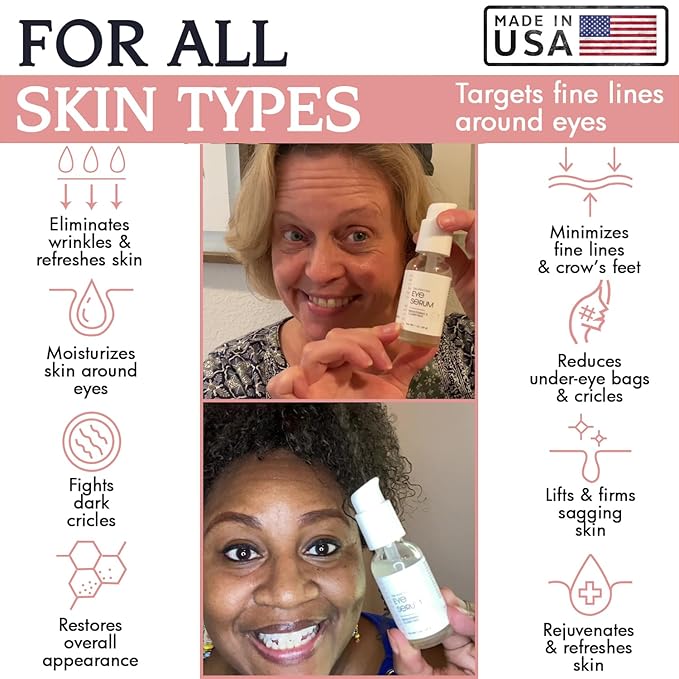 Bella Vérité. Vegan, Tri-Peptide Eye Serum for Mature Skin, Under Eyes to Smooth Fine Lines, Brighten Dark Circles and De-Puff Bags with Hyaluronic Acid, Bergamot, and Triple Peptides, 1 Fl Oz
