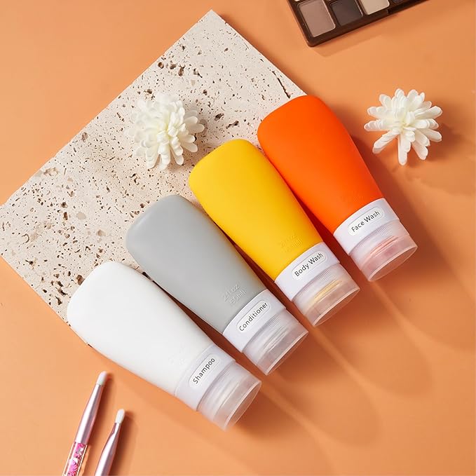 • Sturdy Squeezable Silicone Tubes: food grade BPA Free silicone bottles are safe to use, they are sturdy, durable also very flexible, eco-friendly travel bottles set is good to our enviroment; It provides you a better user experience with four nice colors and labeling stickers, easily helping you differentiate what fill with.