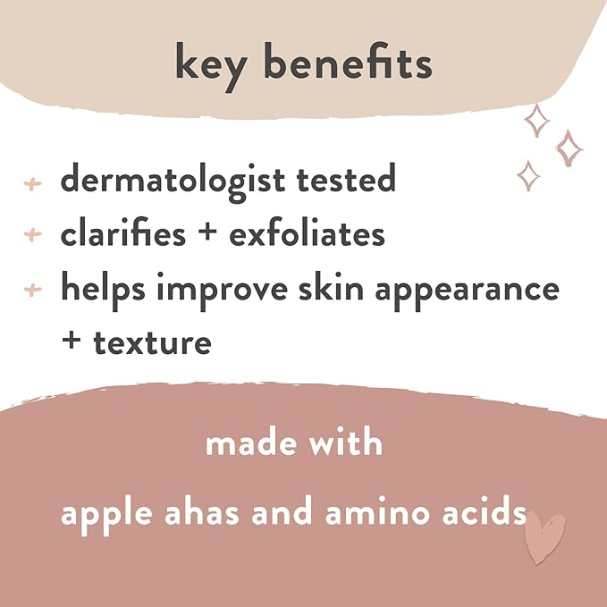 - EXFOLIATING INGREDIENTS: Formulated with a powerhouse blend of naturally derived apple AHAs and Amino Acids, designed to encourage skin's natural exfoliation. Mild and gentle enough to use AM and PM