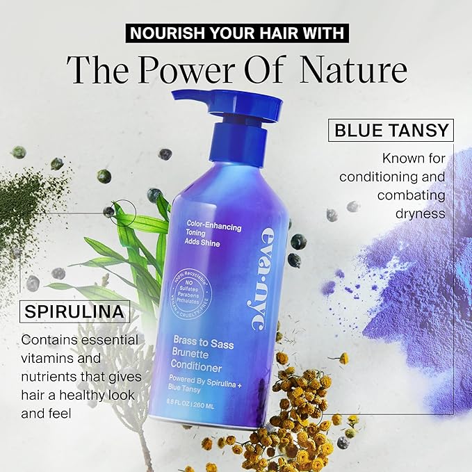 Eva NYC Brass to Sass Brunette Conditioner, Blue Conditioner for Brassy Hair, Neutralizes Brassy Red and Orange Tones, 8.8 fl oz