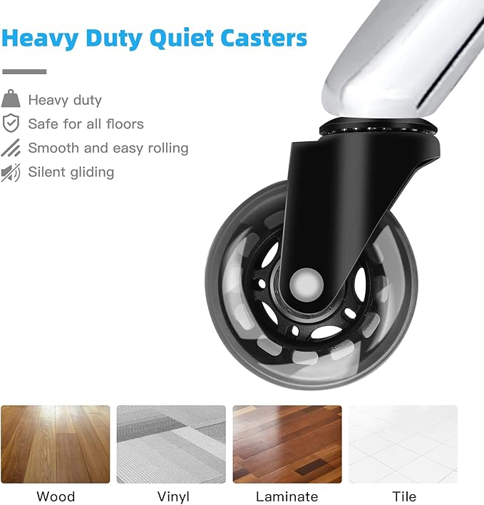 - 【QUIET AND SMOOTH CASTERS】This rolling stool with high-quality wheels are made of soft polyethylene, rolling very smoothly, protect hardwood floors, slate, tile,carpet, and other soft floors.You will love this lash chair with wheels.