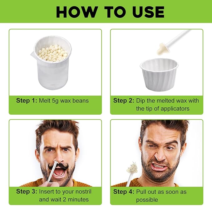 - Bye Awkward Nose Hair!:No more visible nose hair! This nose wax is gentle and pain-free. The nose wax removes hair from the root with ease. This nose wax kit keeps your nose clean and neat in minutes