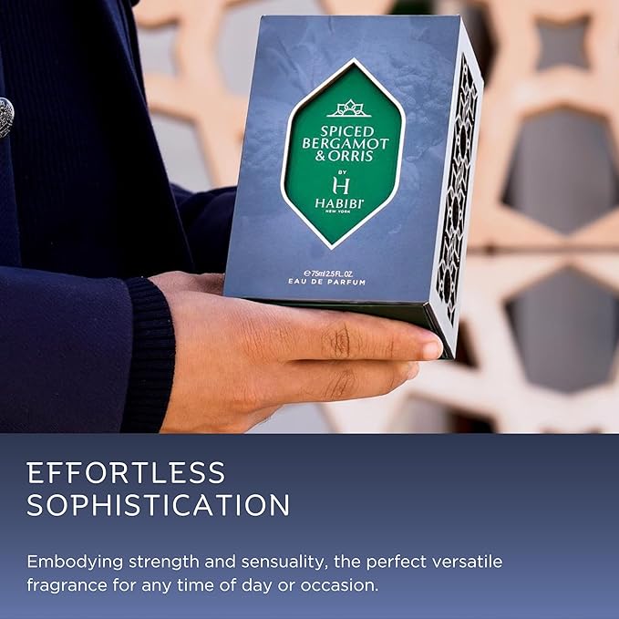 H HABIBI Spiced Bergamot & Orris Arabian Cologne For Men, Eau De Parfum (2.5 Oz) Long Lasting Perfume For Men Blended With Sweet & Spicy Notes of Sage & Oud