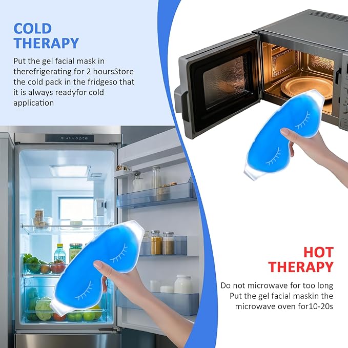 2 Pack Cold Cooling Eye Mask, Hot/Cold Reusable Ice Packs - Compress Therapy for Puffy Eyes, Skin Care, Headaches, Migraines, Stress Relief.