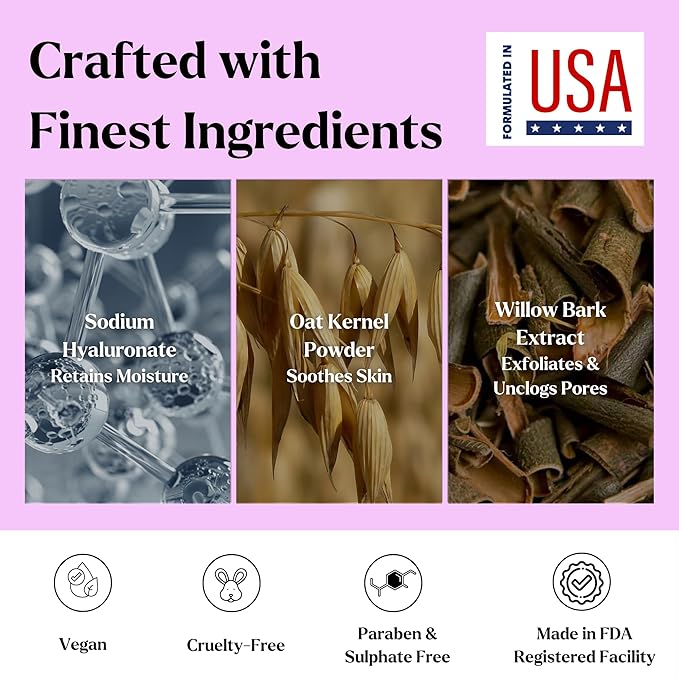 - Product Benefits : Brightening, Detoxifying, Hydrating, Softening