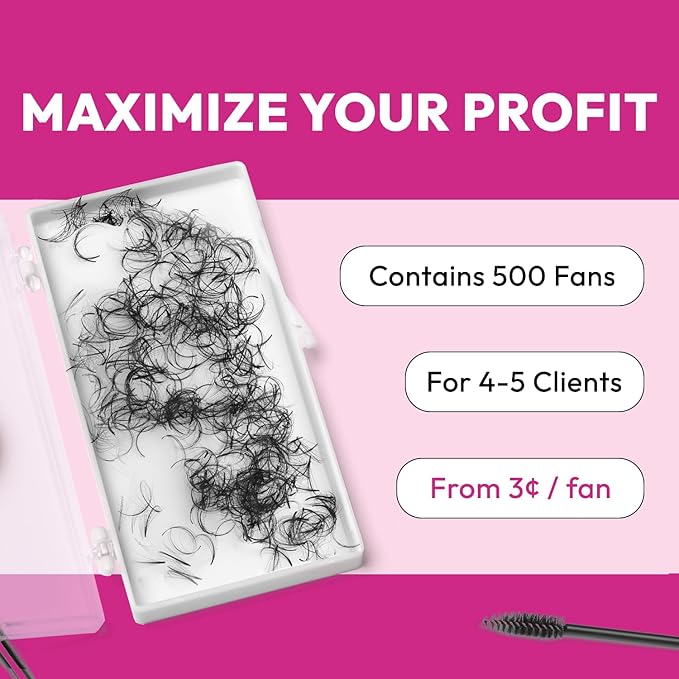 - ✅ HOW TO CHOOSE SIZE & NOTE: The lash lengths are based on outer lashes, not the center spike lash (2mm longer). Each case of pre made fans lash extensions contains 480–530 fans for cost-effectiveness. The package's shapes depend on the current stock.