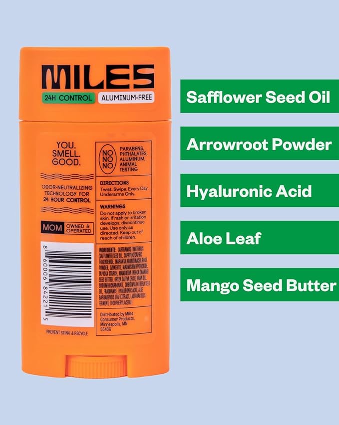 - For the Entire Family - While Miles deodorant is inspired by kids, it is perfect for all ages, men and women.