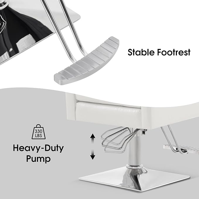 BarberPub Classic Salon Chair for Hair Stylist,Hydraulic Barber Styling Chair,Beauty Salon Spa Equipment 8818 (White)