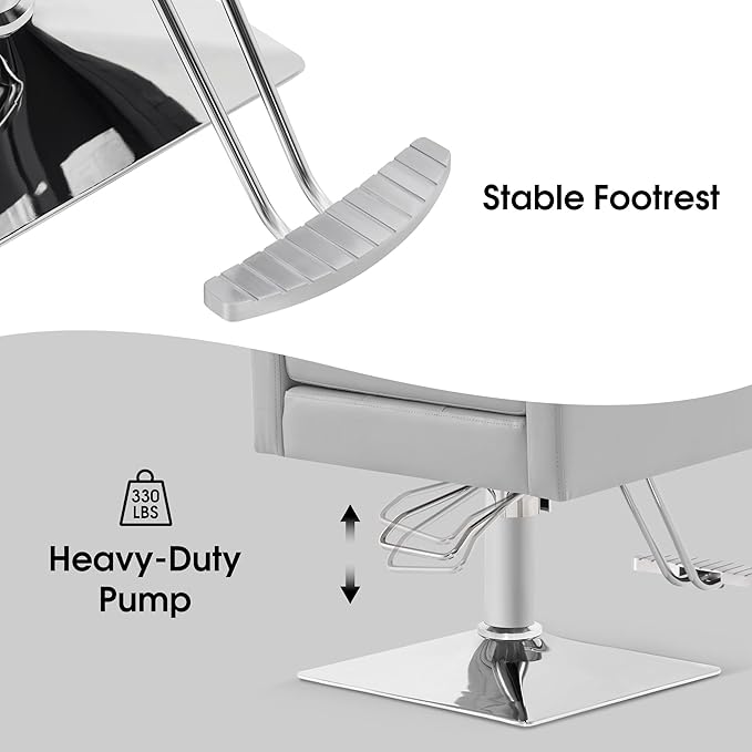BarberPub Classic Salon Chair for Hair Stylist,Hydraulic Barber Styling Chair,Beauty Salon Spa Equipment 8818 (Grey)