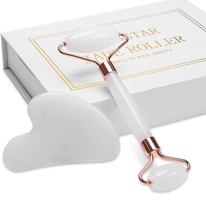 - 【Natural Jade Material】This facial roller gua sha are made of natural jade,which is crystal clear, beautiful color. The handle part of the jade roller, specially selected zinc alloy materials that will not rust to make.