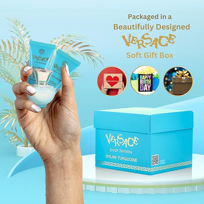 - VERSACE FRAGRANCE COLLECTION – A three-piece set featuring Dylan Turquoise.