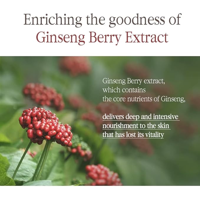 - THOUGHTFUL SUPPLY FOR ELASTIC SKIN - Ginseng Berry extract which contains the core nutrients of Ginseng, delivers deep and intensive nourishment so that makes taut and bouncy skin