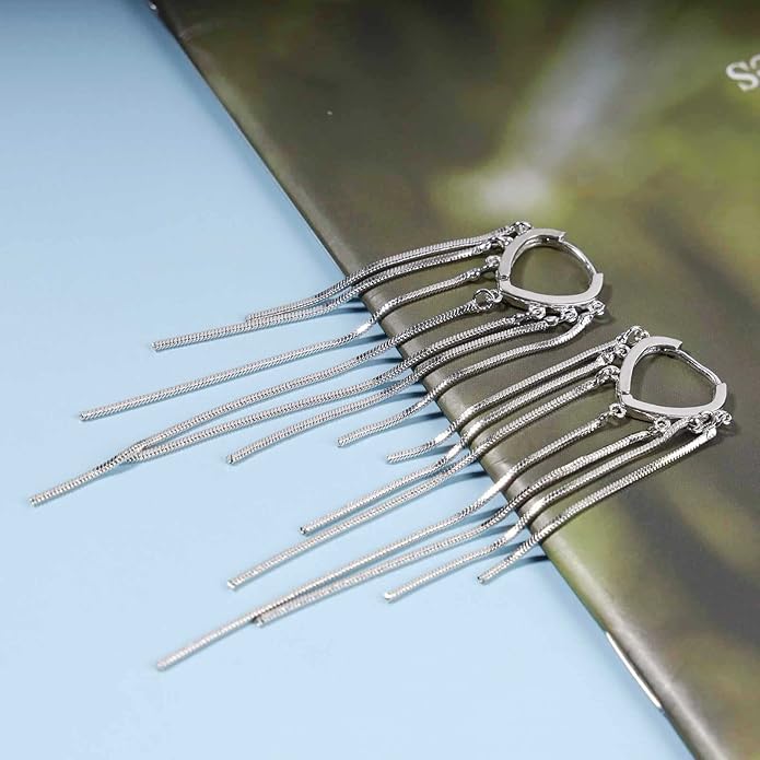 - Silver Long Dangle Earrings suit for daily wear or party wedding prom nightclub or any special occasions.