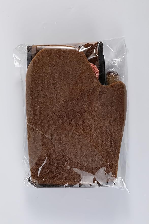 - For Flawless Bronze Fake Tan: The tanning mitt kit includes 1x exfoliating glove to smooth and prepare the skin, 1x self-tanning glove, 1x tanning brush for face tan, 1x back applicator, 1x small mitt for detail tan(such as fingers and toes, etc), which covers all the self-tanning mitt applicators when using the tanning lotion, whether it's the details or the back, do it yourself and give you a real flawlessly sun-kissed skin.