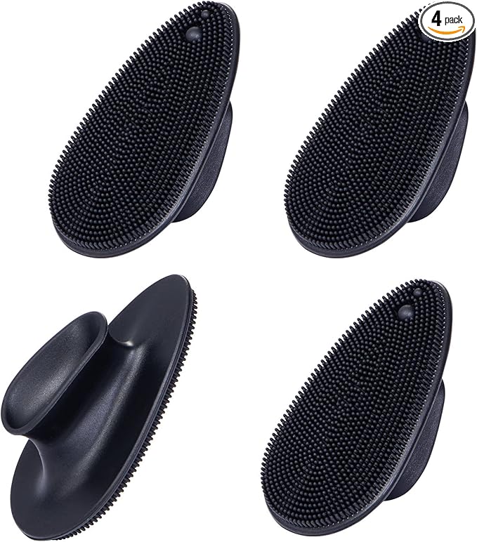 4 Pack Silicone Face Scrubber, Beomeen Facial Cleansing Brush Soft Silicone Facial Exfoliation and Massage Brush Blackhead Scrubber for Men and Women (Black)