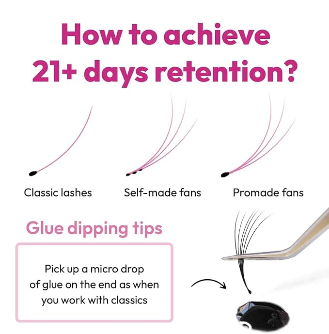 - ✅ POINTY BASE & LONG RETENTION: The premade fans eyelash extensions are effortless to pick up. Tiny pointy bases allow optimal glue absorption and bonding with natural lashes, making it easier to apply with better retention (up to 4-6 weeks) and seamlessly covering the natural eyelashes without gaps.