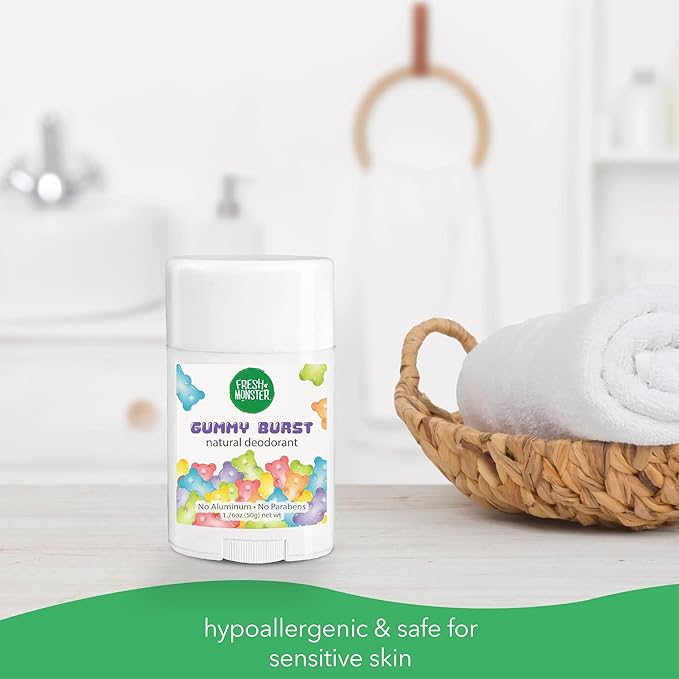 Fresh Monster Natural Deodorant for Kids and Teens I Aluminum-Free, Paraben-Free and Hypoallergenic I Dermatologist Tested I 24-Hour Protection I Gummy Burst I 1.76 oz I 3 Pack