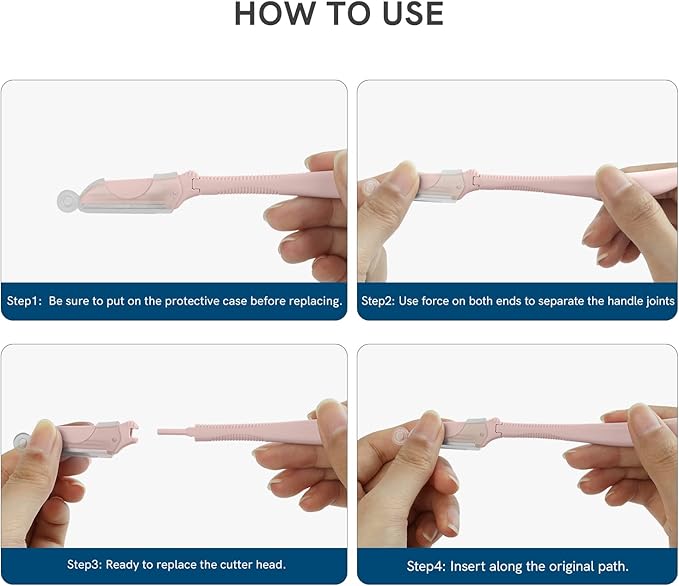 - SAFE REPLACEABLE FACE RAZORS: This eyebrow trimmer kit has 4pcs of T-shaped eyebrow scrapers, 2pcs of replaceable eyebrow scrapers, Extra 4pcs replacement blades included for better performance, 1 second plug-in design, fast and won't hurt yourself.