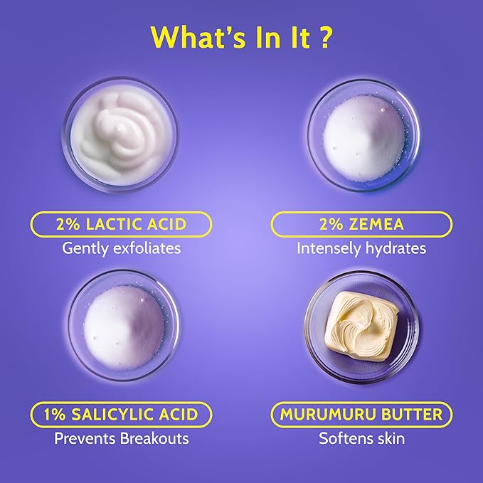 - It is also infused with murumuru butter that acts as a gentle exfoliating agent, the granules melt with body heat, shed dead skin and leave behind smooth skin that’s brighter and healthier.
