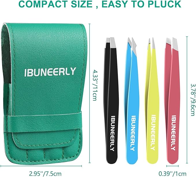 - Tweezers for Women: Come with 4 different colors eyebrows tweezers: slant tip, angle tip, flat tip and pointed tip. Perfect for eyebrows shaping, ingrown hair, first aid, facial nose hair